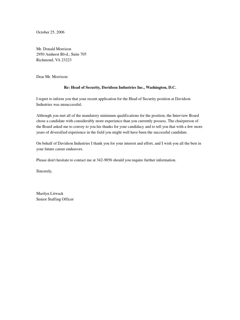Best Photos of Candidate Rejection Letter - Thank You ...