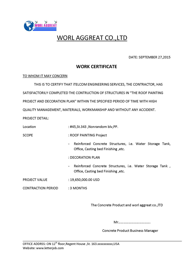 Experience Certificate Format Letter. The experience certificate format should be in a polite language and must. A work experience letter from a company includes the follow information: You may also see Job Experience Letter Format Templates.