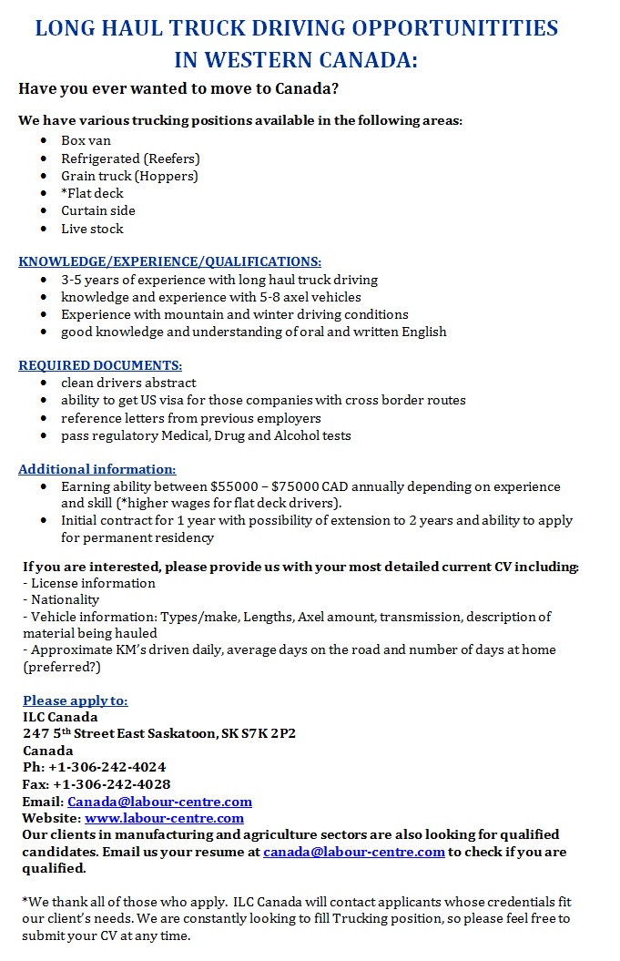 Long-haul truck driver in Canada